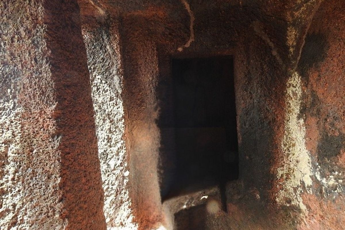 Step through any entrance, and the temperature drops immediately. The laterite walls, several feet thick, hold the coolness of earth, creating a natural climate perfect for meditation in tropical heat. The interior layout is simple: long, rectangular chambers with low, flat ceilings and plain walls bearing marks from ancient cutting tools. There are no elaborate pillars, no decorated capitals, no narrative reliefs. The design speaks of function over display, shelter over spectacle, and many historians see clear parallels with early Buddhist rock-cut viharas where monks lived and meditated away from village distractions.