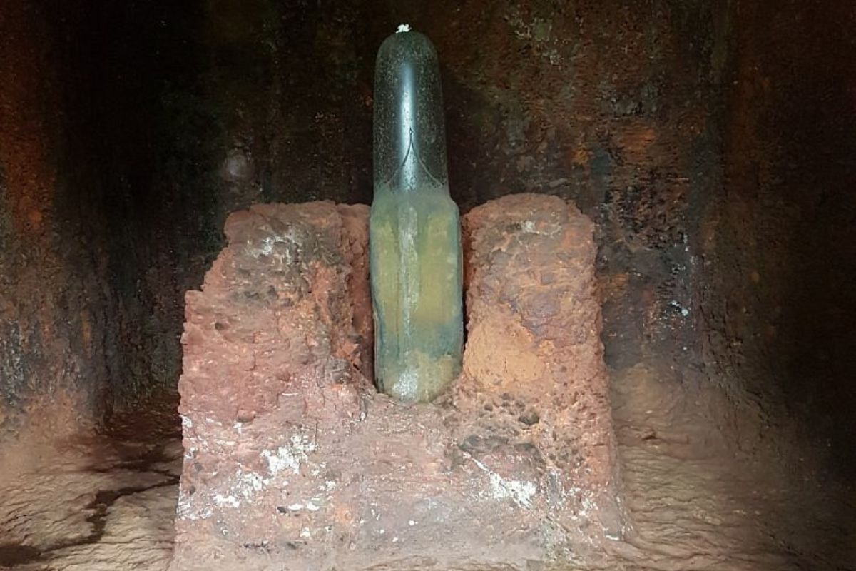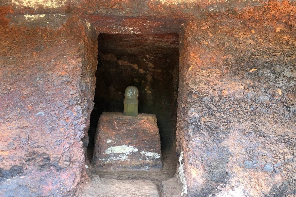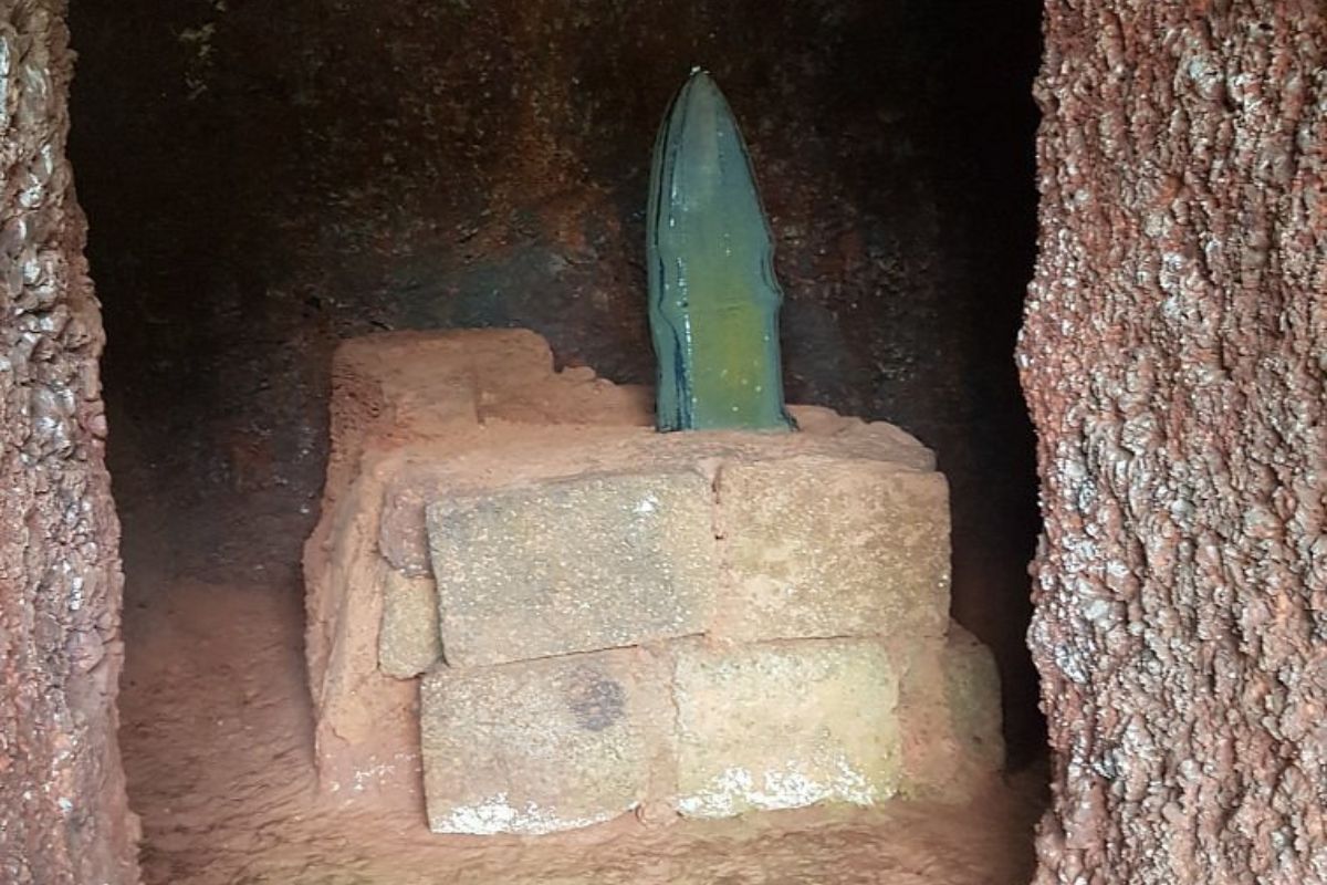 Period dating, roughly 5th to 7th century CE, aligns with Buddhism’s strong presence in western India before its gradual decline. Arvalem Caves likely began as precisely that: a small monastic retreat carved by Buddhist communities who valued the quiet laterite hillside and nearby water source. But walk further inside, and the story shifts. Each chamber now contains a granite Shiva linga, some more weathered than others, standing in sharp material contrast to the soft red laterite surrounding them. These lingas were clearly added later, brought from elsewhere and installed as objects of Shaivite worship, transforming what may have been meditation cells into active shrines.