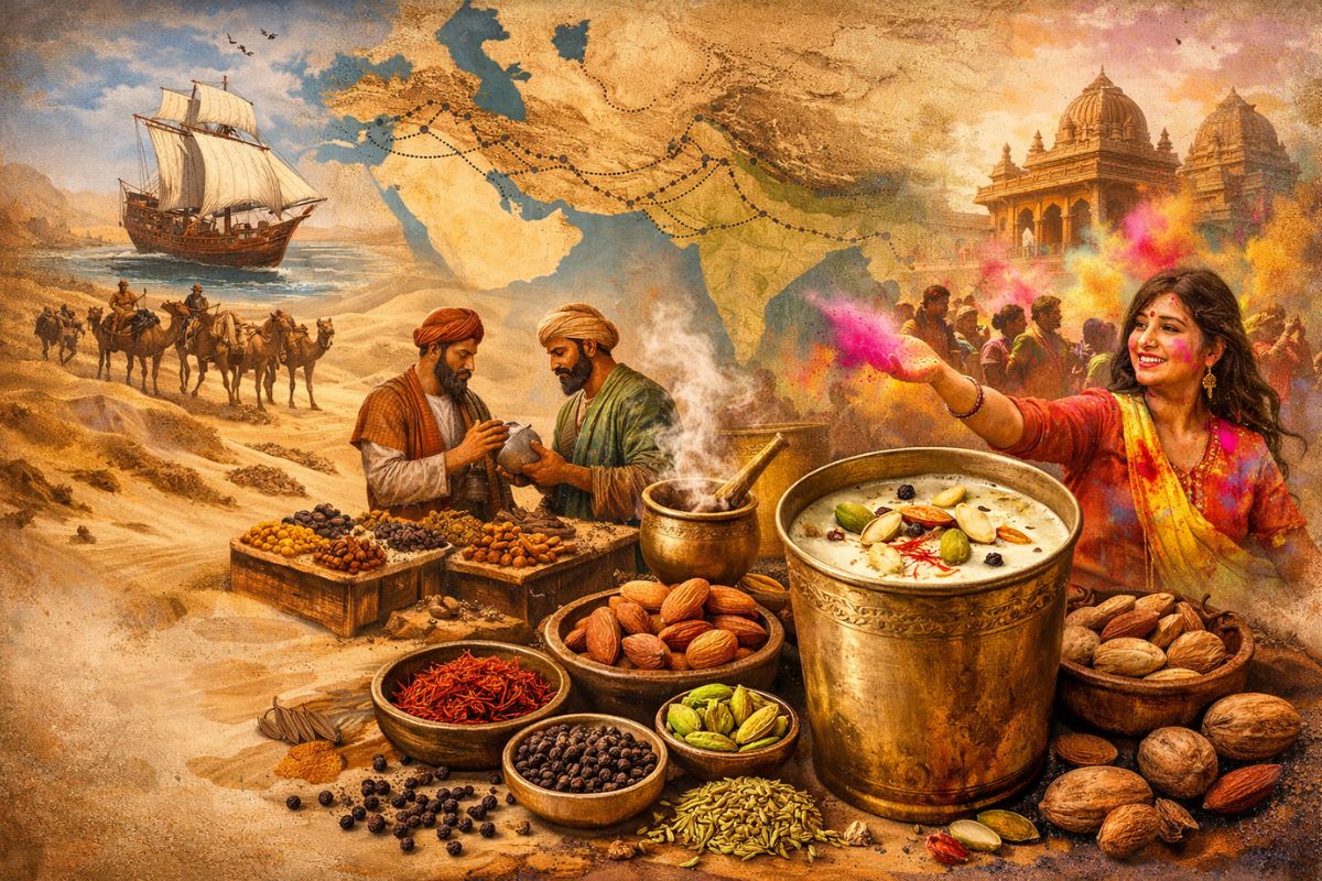 Thandai-the chilled milk drink served at every Holi celebration carries centuries of trade history in each sip. What began as a medicinal tonic in northern India evolved through ancient commerce networks into the festival beverage that now defines spring celebrations across the subcontinent.