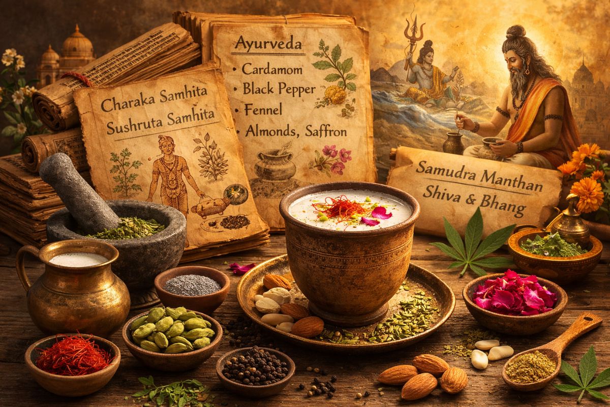 Thandai first appeared in medical texts over a millennium ago, primarily in the regions now known as Uttar Pradesh and Rajasthan. Physicians working within the Ayurvedic tradition documented the drink as a remedy for heat exhaustion and digestive complaints. The earliest references appear in writings attributed to Charaka and Sushruta, medical scholars from the first and second centuries who catalogued the therapeutic properties of cardamom, black pepper, and fennel.