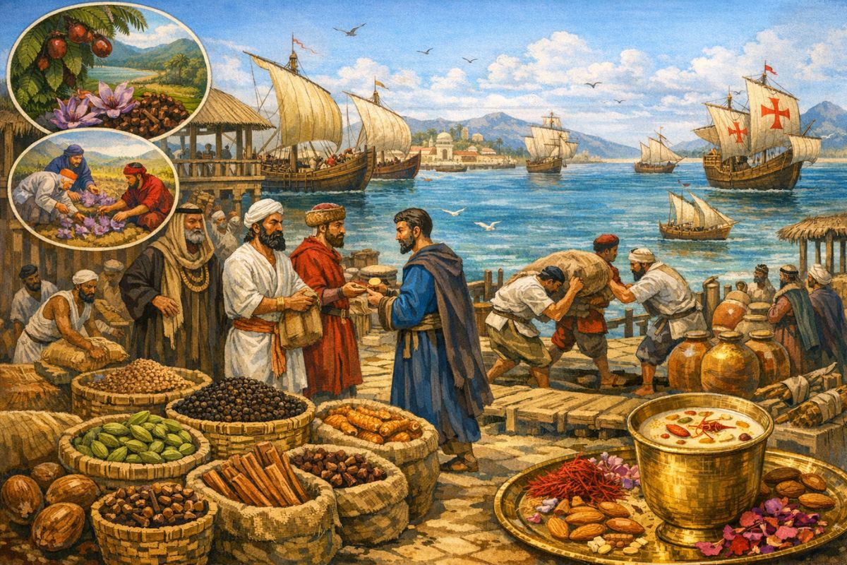 India participated in spice trade networks for more than 4,000 years. Archaeological evidence from the Indus Valley civilisation shows trade connections that supplied ingredients eventually incorporated into drinks like thandai. Ports along the Malabar Coast, particularly Muziris and Calicut, shipped black pepper, cardamom, and turmeric to Arabia, Egypt, and Rome as early as the first century before the Common Era.