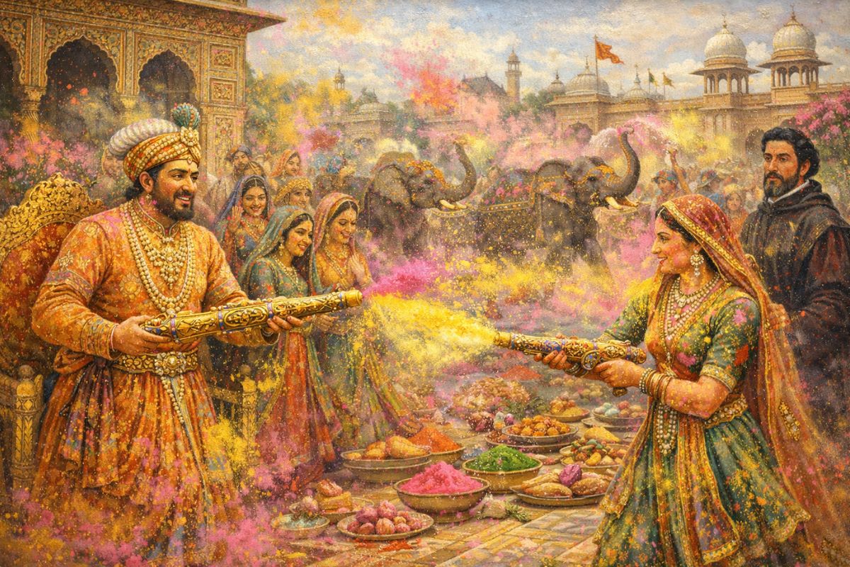 What happens when a Muslim emperor throws colored powder at his Hindu courtiers and calls it a national celebration? The Mughal courts from the sixteenth to the nineteenth centuries turned Holi into something unexpected: a symbol of political unity wrapped in clouds of pink and yellow dust.
