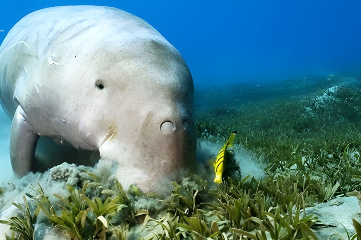 Dugong belongs to an unusual family of marine mammals. Adults stretch up to 3 meters long and weigh up to 400 kilograms. They live in shallow coastal waters where sunlight reaches the bottom, sustaining the seagrass meadows that form the basis of their diet. An adult dugong consumes between 30 and 40 kilograms of seagrass each day, grazing in patterns that prevent the beds from growing too thick and stagnant.