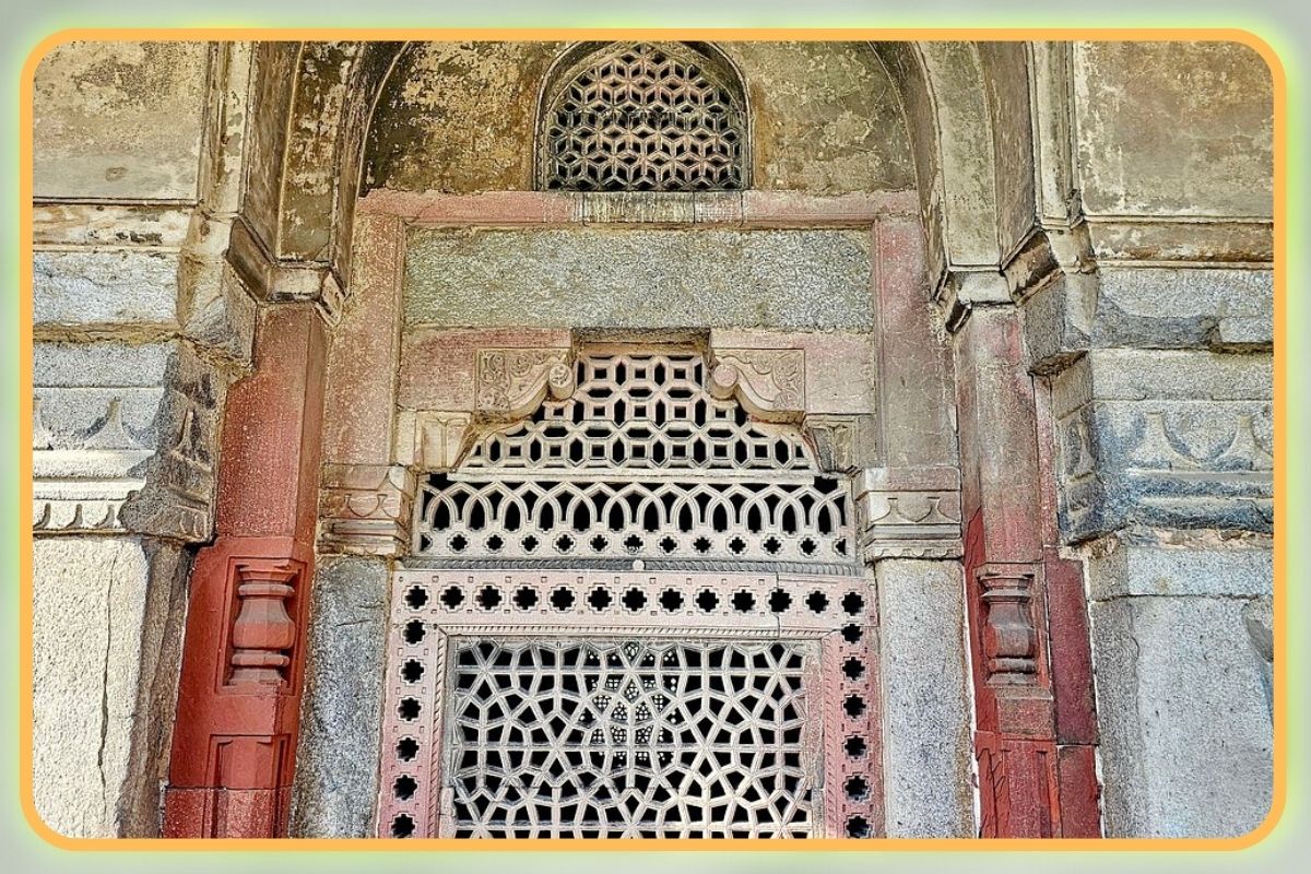 When viewed closely, Isa Khan’s Tomb reveals features that forecast the coming Mughal style. Its symmetry, balanced design, and ornamentation show a move towards sophistication. Yet, its simplicity and strength retain the Afghan spirit. The tomb sits on a raised platform, and its dome is proportionate, not towering. The intricate lattice windows, sandstone carvings, and blue tiles on the dome all contribute to a distinct identity. In essence, it bridges two worlds, the fading Lodi architecture and the rising Mughal elegance.