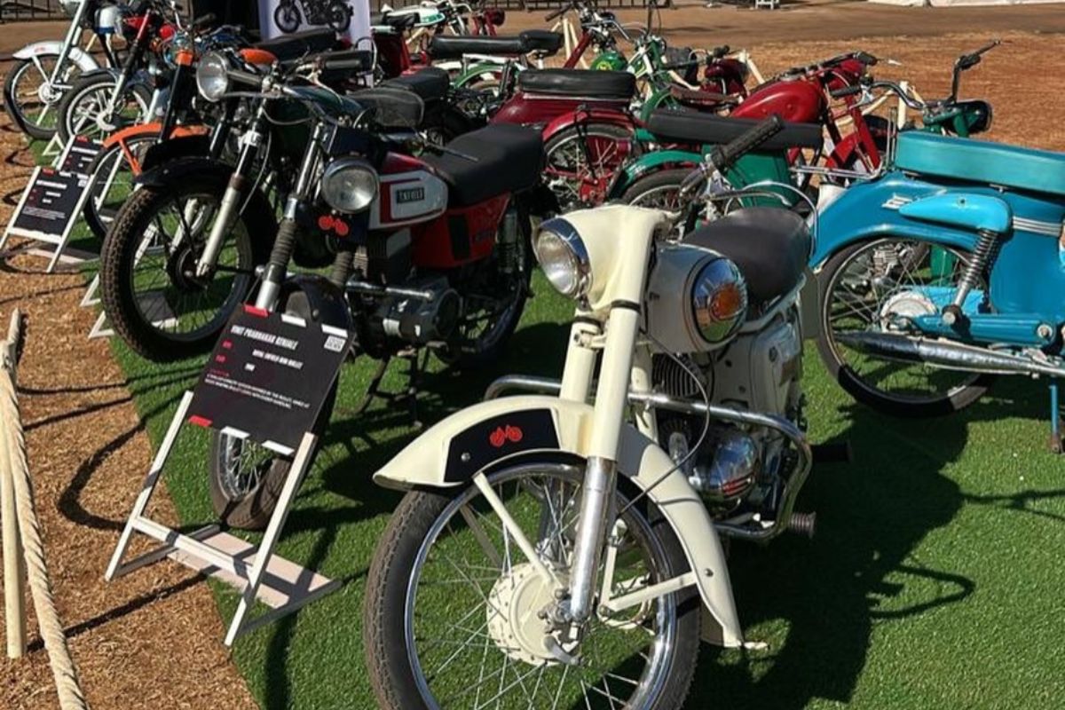 Five hundred machines fill the exhibition space. The inventory includes motorcycles, scooters, mopeds, and scooterettes from manufacturers that shaped Indian transportation. Metal frames from the 1940s sit near plastic-bodied models from the 2000s. Two-stroke engines share space with electric motors.