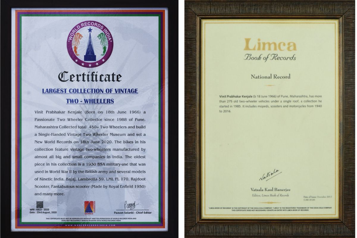 The collection grew steadily over three decades. By the time Kenjale decided to formalise the museum, he had accumulated pieces that ranged from military motorcycles of the 1930s to electric scooters from the current decade. The Limca Book of Records recognised his achievement in 2018. World Records of India followed in 2020.