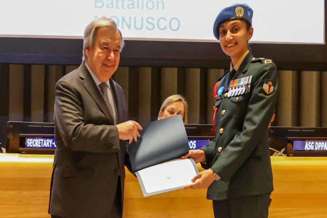 In a remarkable display of leadership and unwavering commitment to gender equality, Major Radhika Sen of the Indian Army has been bestowed with the prestigious United Nations Military Gender Advocate of the Year Award for 2023. This honor, presented by UN Secretary-General António Guterres himself, recognizes her outstanding service during her deployment in the Democratic Republic of the Congo as part of the MONUSCO (United Nations Organization Stabilization Mission in the Democratic Republic of the Congo).