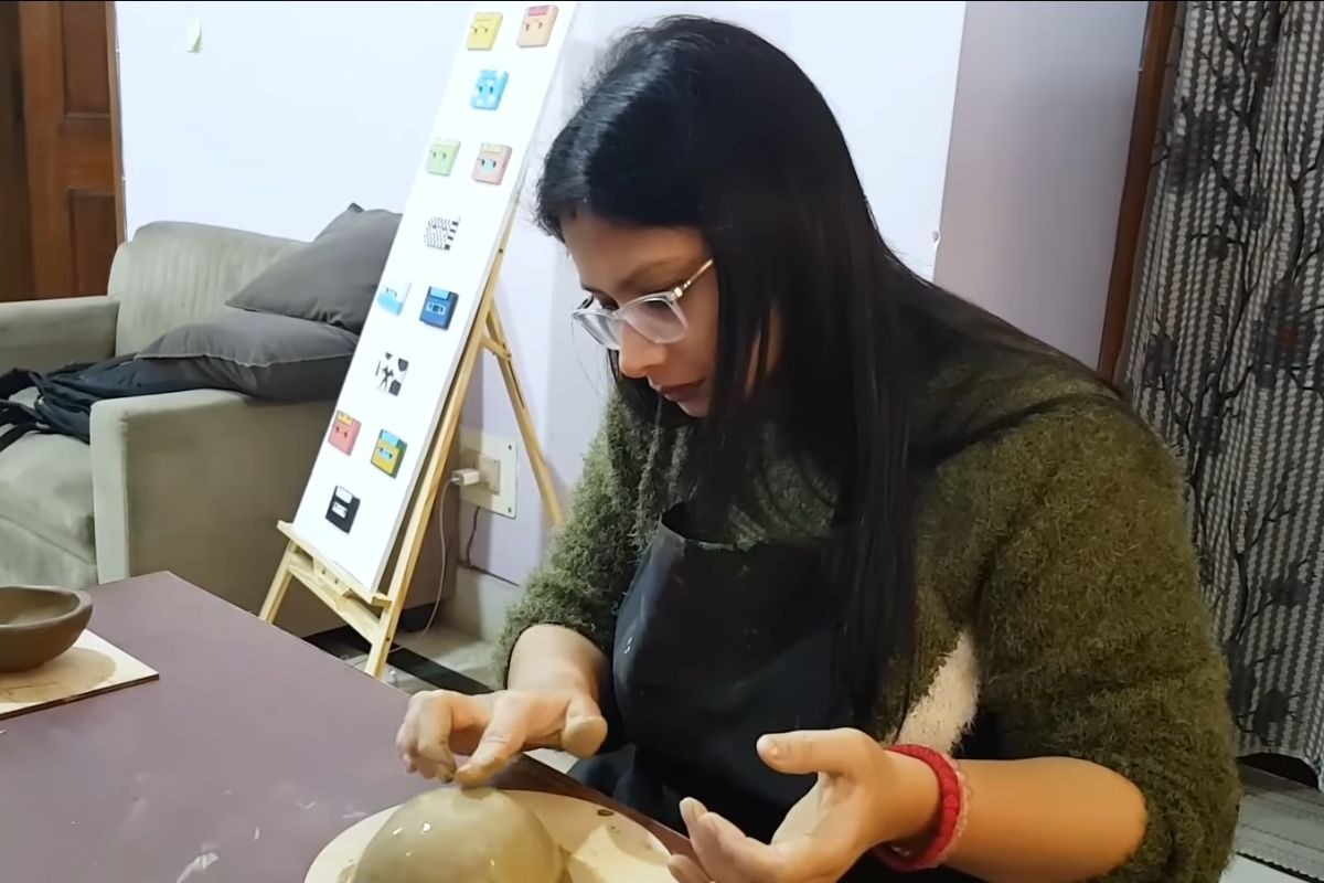 Among the many people who walk into the studio, learners like Sushrita and Monalisa show how pottery can mirror an inner journey from noise to stillness. Sushrita first knew clay as a childhood friend, when open ground and raw earth were more common than concrete, and playing with mud was part of daily life rather than a rare weekend activity.