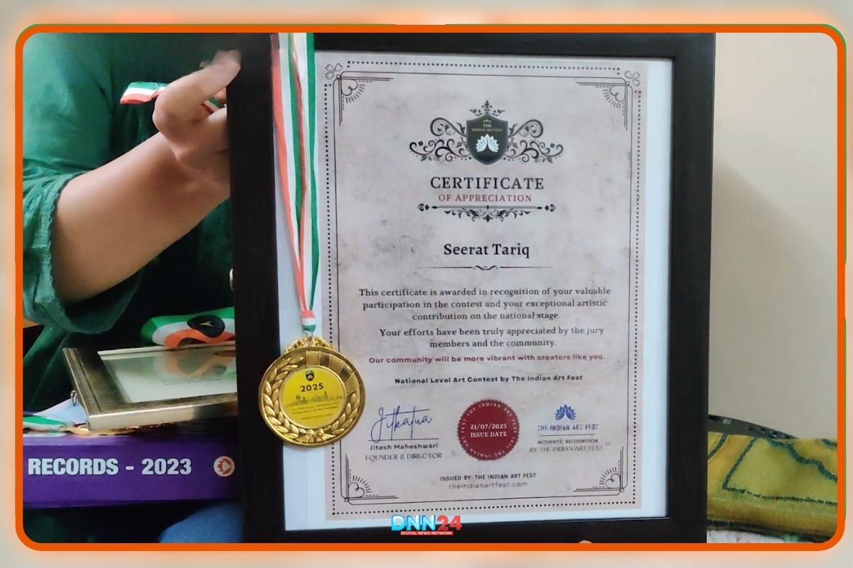 Seerat Tariq comes from Bandipora, a district in Kashmir known more for its natural beauty than its artists. Growing up in this quiet town, she discovered her love for colours and canvas at an early age. Her journey from classroom sketches to international recognition was made possible through consistent effort and genuine passion. The gold medal she won in tribal art represents more than personal success. It marks a turning point for Kashmiri artists, particularly young women who aim to make their mark in the creative fields.