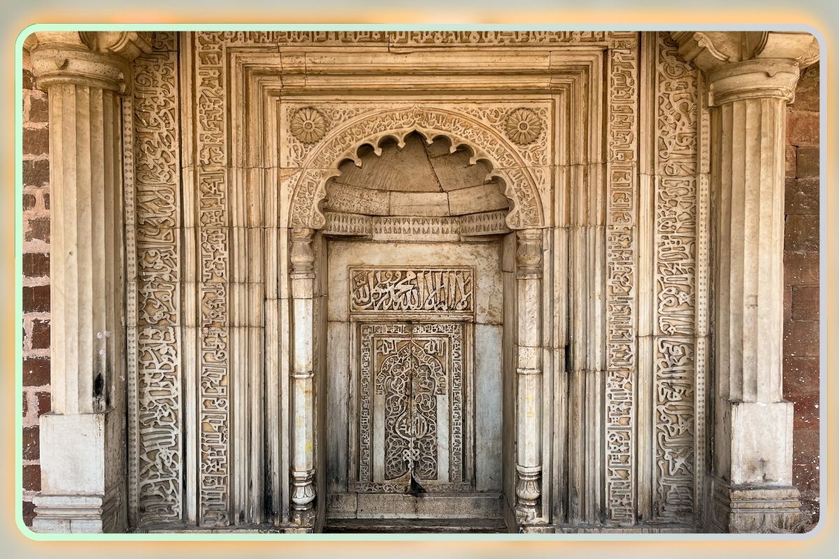 The temple belonged to the Pratihara period, which flourished between 700 and 1100 CE. Many of the carved columns and decorative lintels you see today actually came from that temple. Medieval artisans did not destroy these older pieces but incorporated them into the new Islamic structure. Hindu motifs sit comfortably beside Islamic arches, creating a visual conversation between two faiths. Later, Sultan Firuz Shah Tughluq carried out repairs in the 14th century, adding Turkish and Afghan patterns to the prayer niches and restoring the marble façade. The tomb stands as proof that Indian architecture has always been about adaptation and respect, not rejection.
