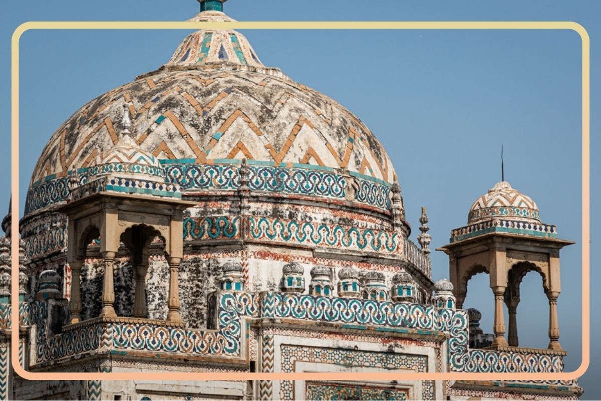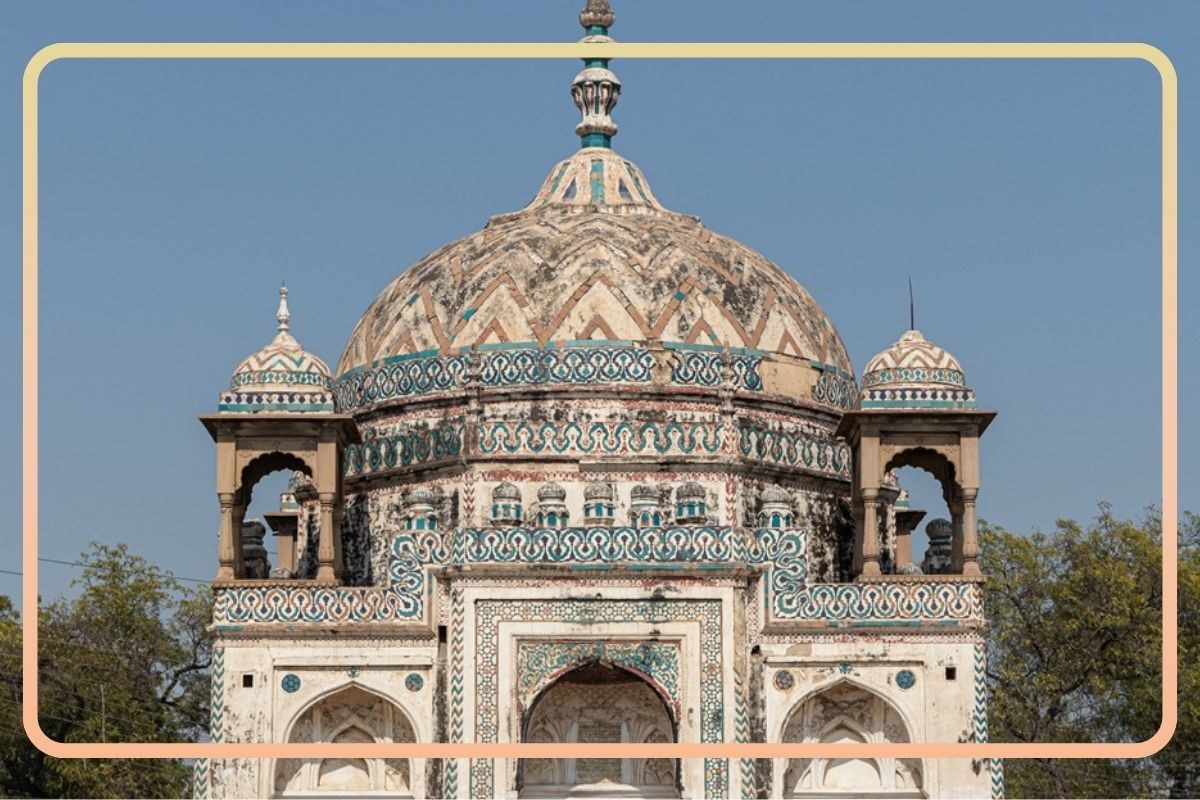 The tomb itself speaks a language that mixes Islamic tradition with Indian sensibility, creating something that belongs to neither culture in its entirety and to both in equal measure. Built in the Indo-Islamic style that flourished under late Mughal influence, the main structure rises from a square platform, supporting a single dome flanked by four small chhatris at the corners, each like a miniature pavilion reaching toward the sky. Every side of the building shows three arched openings, with the central arch rising slightly higher than its neighbours.