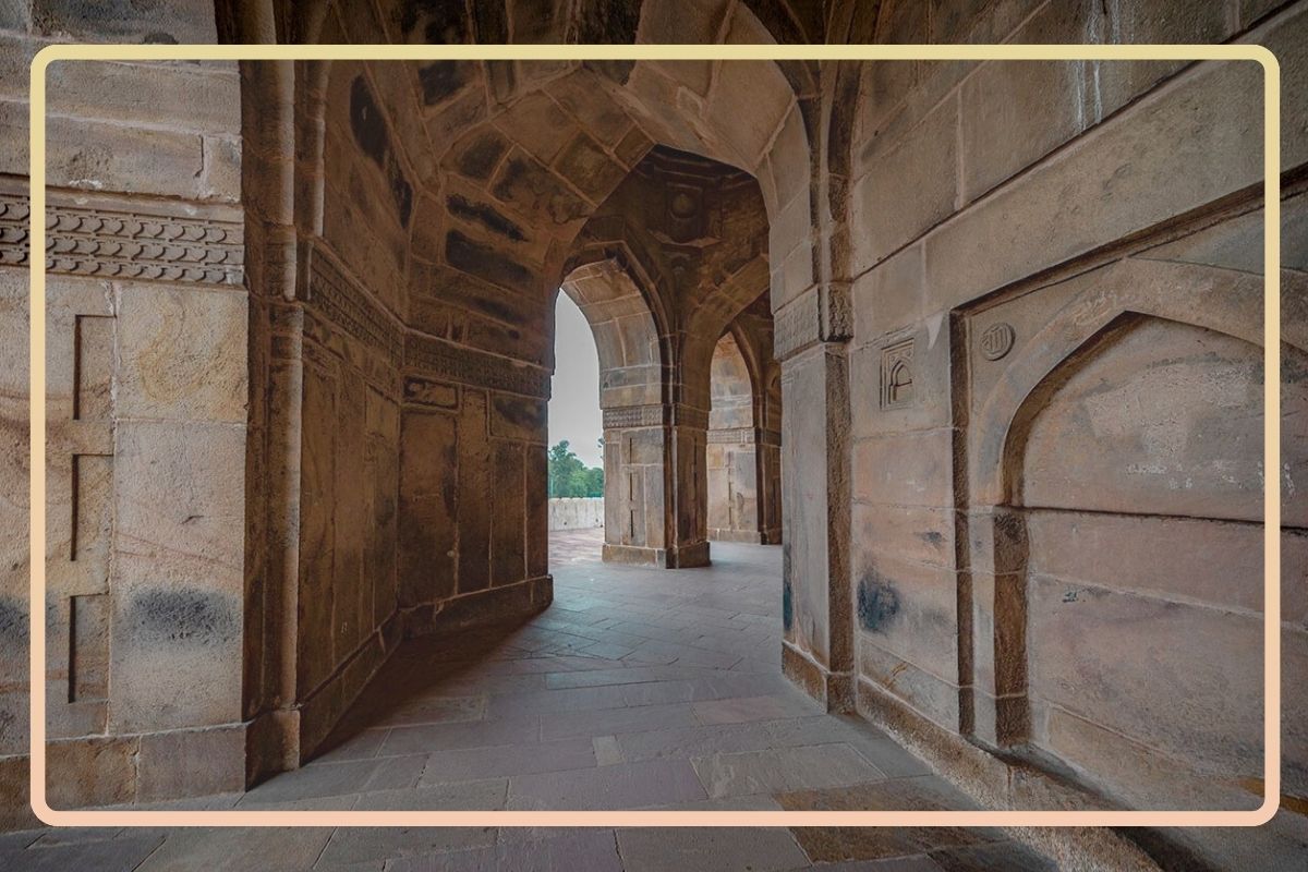 The monument’s octagonal plan, its vast sandstone dome (spanning 22 meters and considered the largest in India at the time), and the chhatris at every corner all echo the classic features of Afghan tomb design, yet the artistry here is uniquely Indian. Arched entrances, lattice screens, and calligraphy on the four sides reveal an architect’s devotion: windows let in patterns of light, stone banks and stepped moorings beckon the feet of travellers.