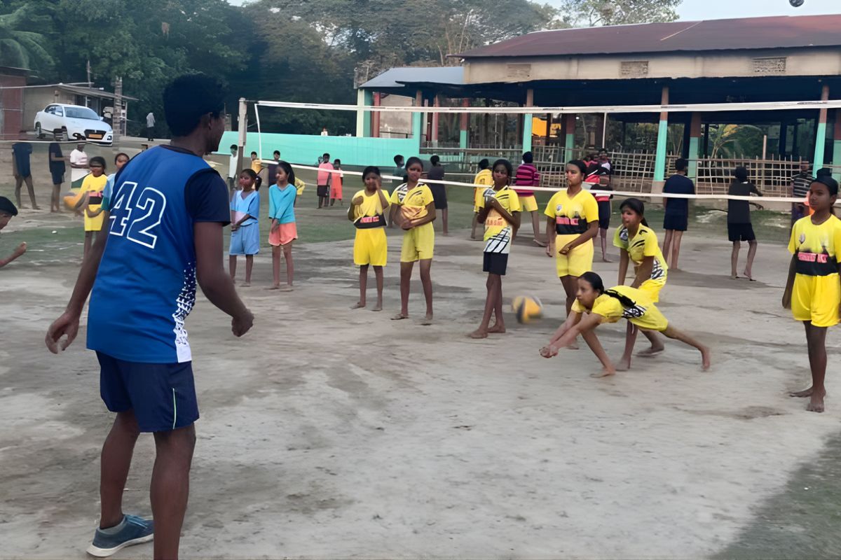 Retirement brought a shift in purpose. Bhattacharya founded the Rangoni Youth Sports Foundation and focused on Assam’s rural areas, where children had few organised sports opportunities. In 2019, he started the Assam Volleyball Mission 100 with a straightforward goal: deliver volleyballs to 100 villages and teach children how to play.